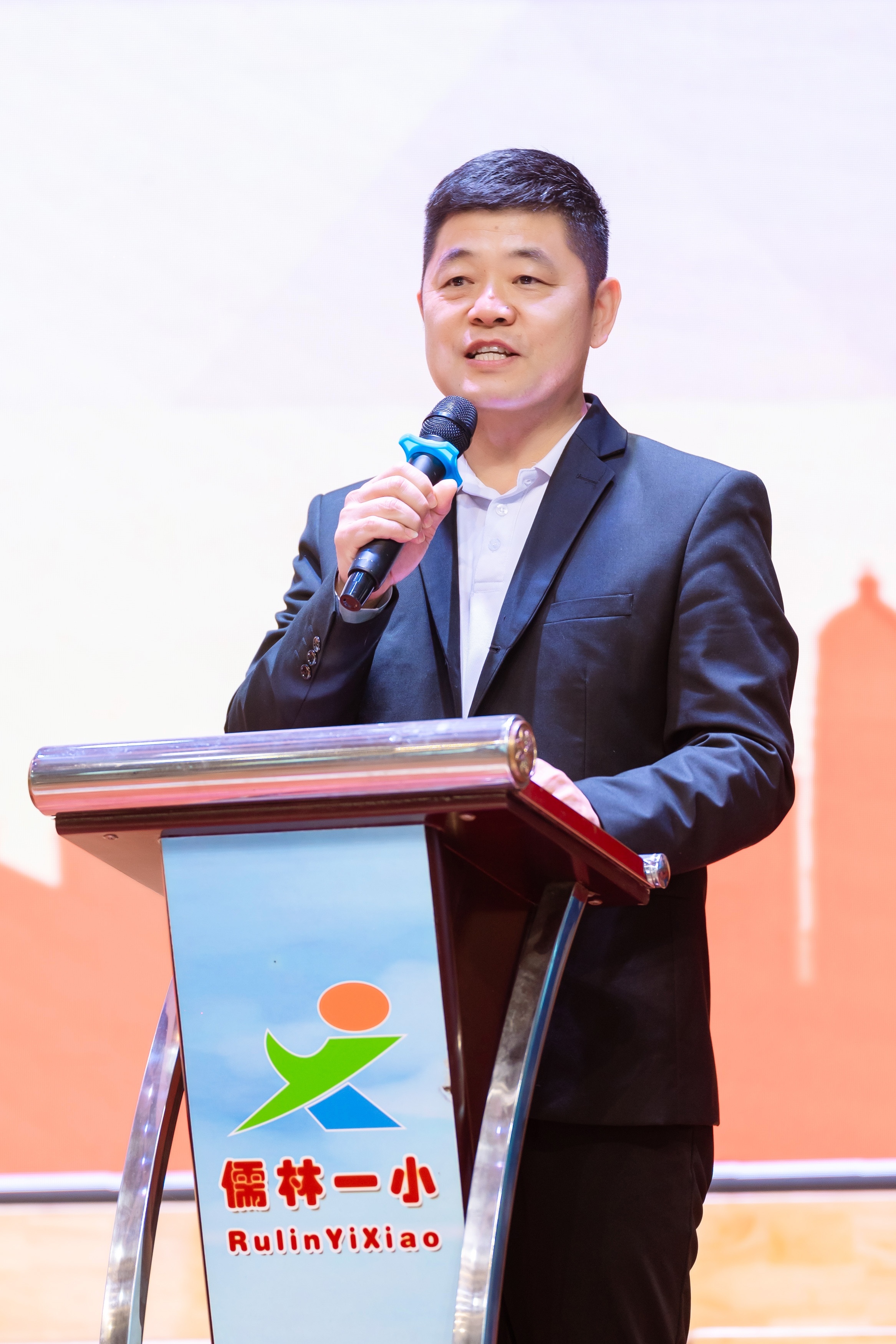 儒林第一小学家委会关向荣会长带领全体家委宣誓。