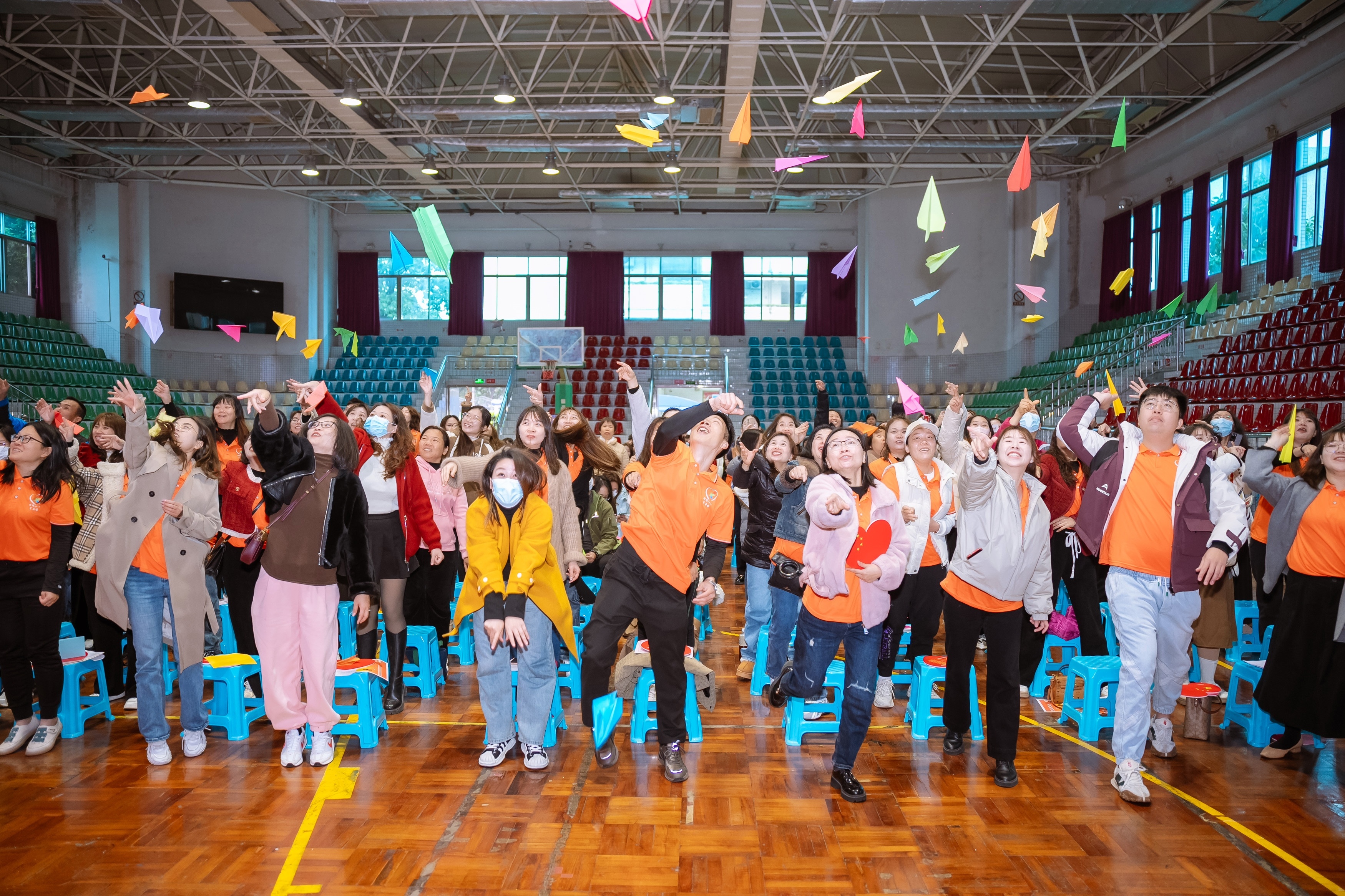 接着,在会议互动环节中,家长们利用彩纸折出承载着期待的纸飞机,在一声声美好的寄愿下,有力地掷出,期待下个学期各项教育活动都能顺利进行。