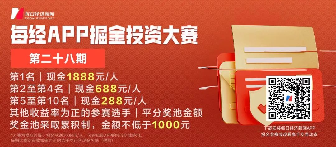 【节前A股强劲反弹,多位选手抄底盈利!前十名奖励丰厚,快来赢取现金大奖!】春节前,A股出现强劲反弹。在每日经济新闻APP举办的掘金大赛第28期比赛中,选手们火速报名参赛,取得了不错的收益。在节后本期比赛将进入下半场。在春节期间,选手也能报名,本期比赛的报名时间为2月3日至2月21日,比赛时间为2月5日至2月23日。比赛结束正收益选手获现金奖励,前十名选手现金奖励丰厚。比赛为模拟炒股,第1名现金奖励1888元/人(税前),第2至第4名现金奖励688元/人(税前),第5至第10名现金奖励288元/人(税前);其他收益为正的选手平分1000元现金奖池(税前)。下载安装每日经济新闻APP报名参赛,零风险赢现金大奖!