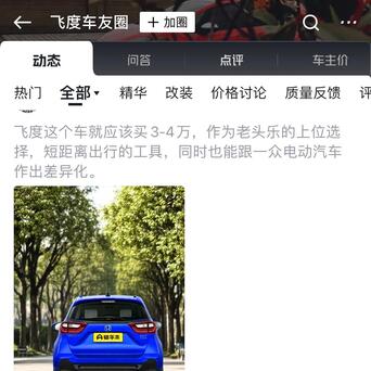 看到飞度车友圈,有车友发帖说:飞度这个车就应该买3-4万,作为老头乐的上位选择,短距离出行的工具,同时也能跟一众电动汽车作出差异化。