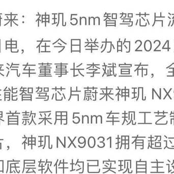 【华为都没做到的事,蔚来却做到了?】蔚来发布全球首颗5nm智能驾驶芯片-神玑NX9031。李斌介绍其芯片和底层软件均已实现自主设计,拥有超过500亿颗晶体管。